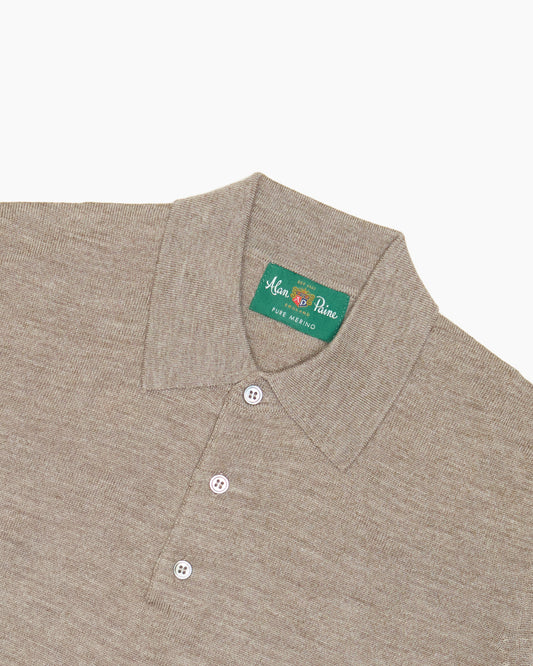 Mushroom Hindhead Merino Wool Polo Shirt
