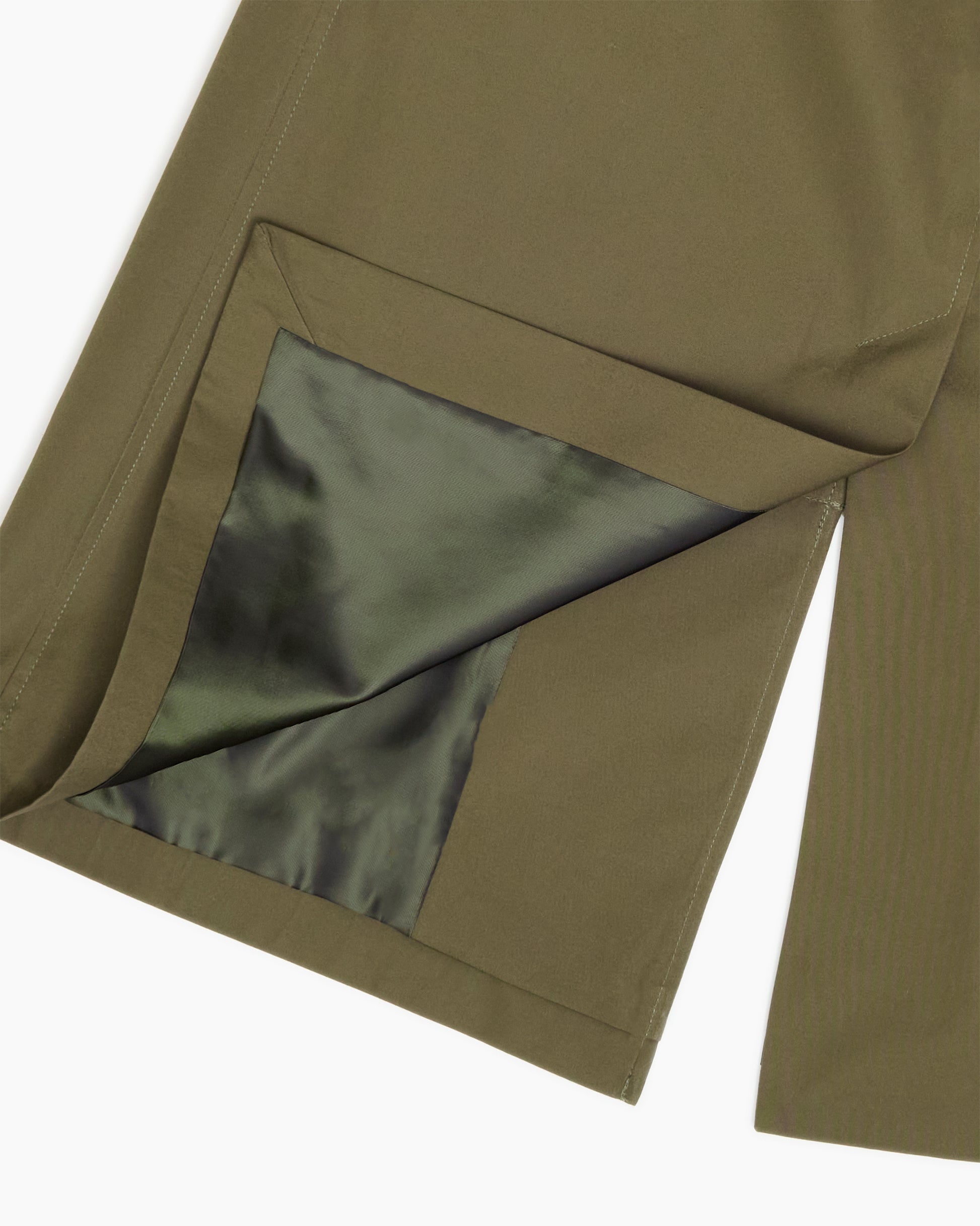 This particular model is produced in a classic olive Japanese showerproof cotton.