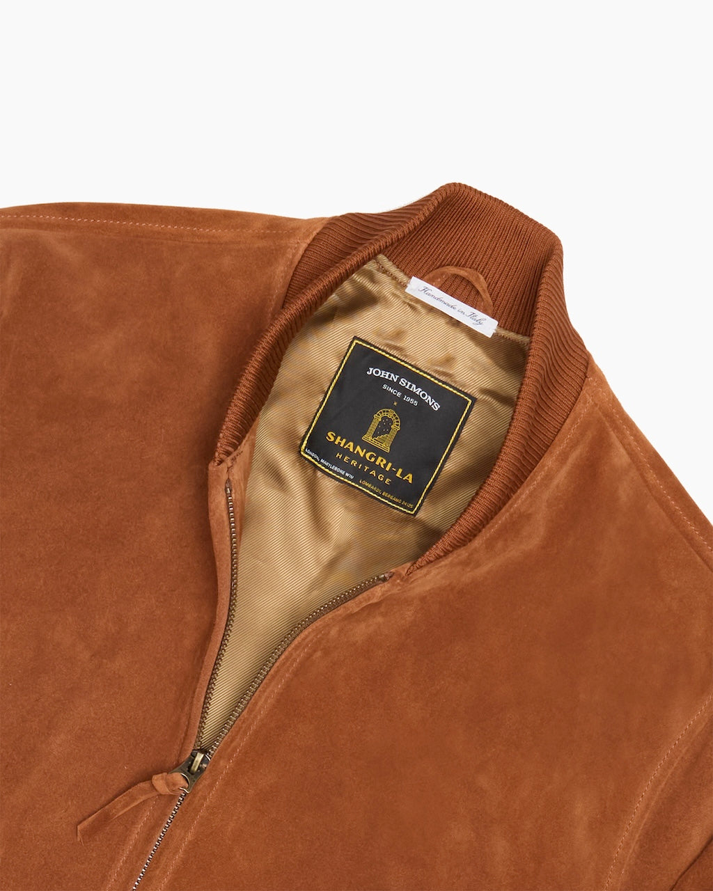The John Simons x Shangri-La 1950s Style Suede Bomber Jacket showcases a shared dedication to craftsmanship, heritage and timeless design. Handmade in Italy, this collaboration takes the iconic mid-century bomber silhouette and reimagines it through the warmth and texture of premium suede.